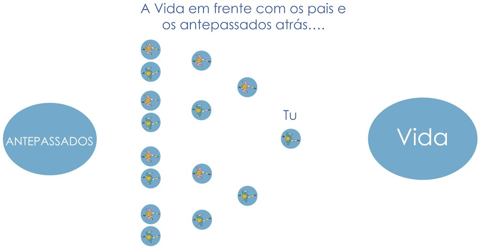 A "programação" familiar é inconsciente e a Psicogenealogia ajuda a trazer à superfície para ser curada. Quando abrimos a árvore genealógica, movimentamos a energia na família  e a cura começa a acontecer. Depois de curar os conflitos você pode caminhar olhando a sua vida adiante com sua família no lugar certo e  sã como este desenho mostra: